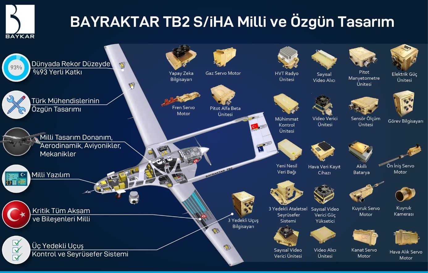 Bayraktar TB2’nin Aviyonik Sistemlerini Gösteren Bir İnfografik - Baykar Teknoloji