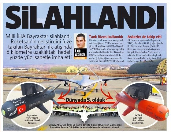Bayraktar TB2'nin 2015 Yılında Silahlanmasından Sonra Çıkan Bir Gazete Haberi (Kaynak: Vatan Gazetesi)