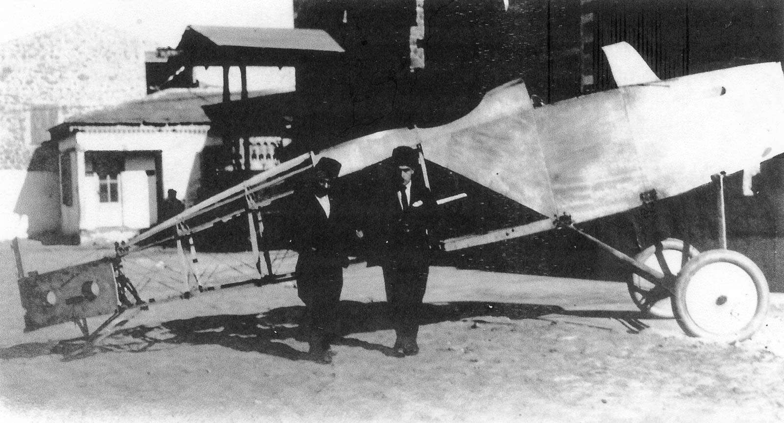 Vecihi Hürkuş, kendi tasarladığı uçağının önünde.