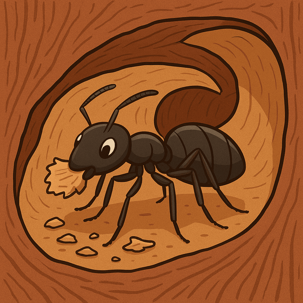 Carpenter ants are insects belonging to the order Hymenoptera and the family Formicidae, known for their social lifestyle. The name “carpenter” is given due to their habit of constructing nests by excavating tunnels in wood. However, they do not consume wood; they merely carve out hollow spaces. This distinguishes them from termites. One of the most commonly known species is Camponotus pennsylvanicus.