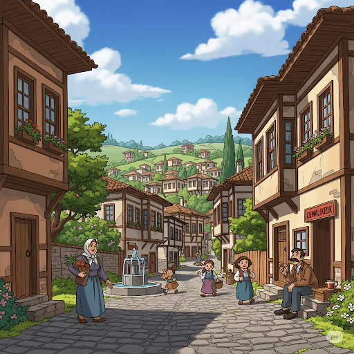 Cumalıkızık is a very old village founded about 700 years ago during the Ottoman era. The houses in the village were built from stone and wood according to the architectural styles of that time. The roofs are covered with red tiles, and each house is very similar to the others. These houses have been preserved without damage for centuries, making the village like a living history book.