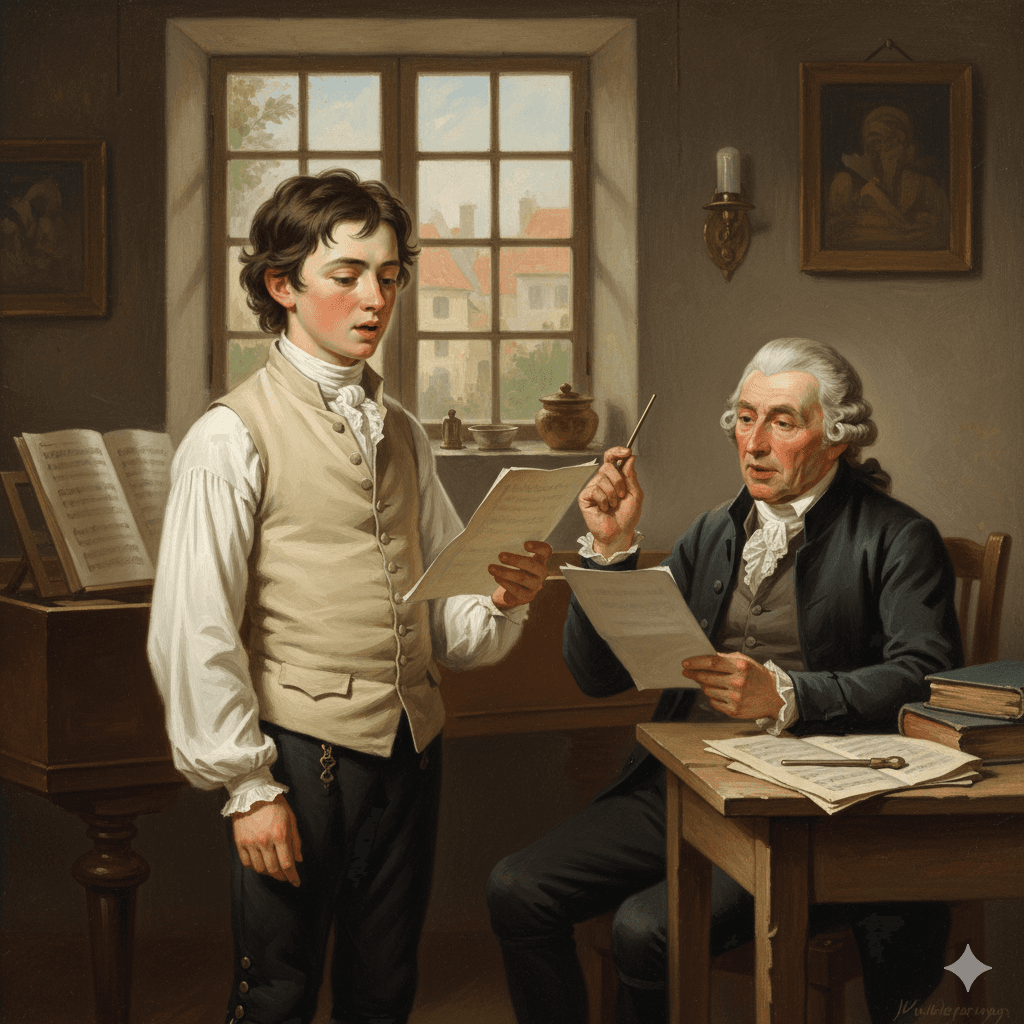 Haydn receiving singing lessons, representative (image generated by artificial intelligence).