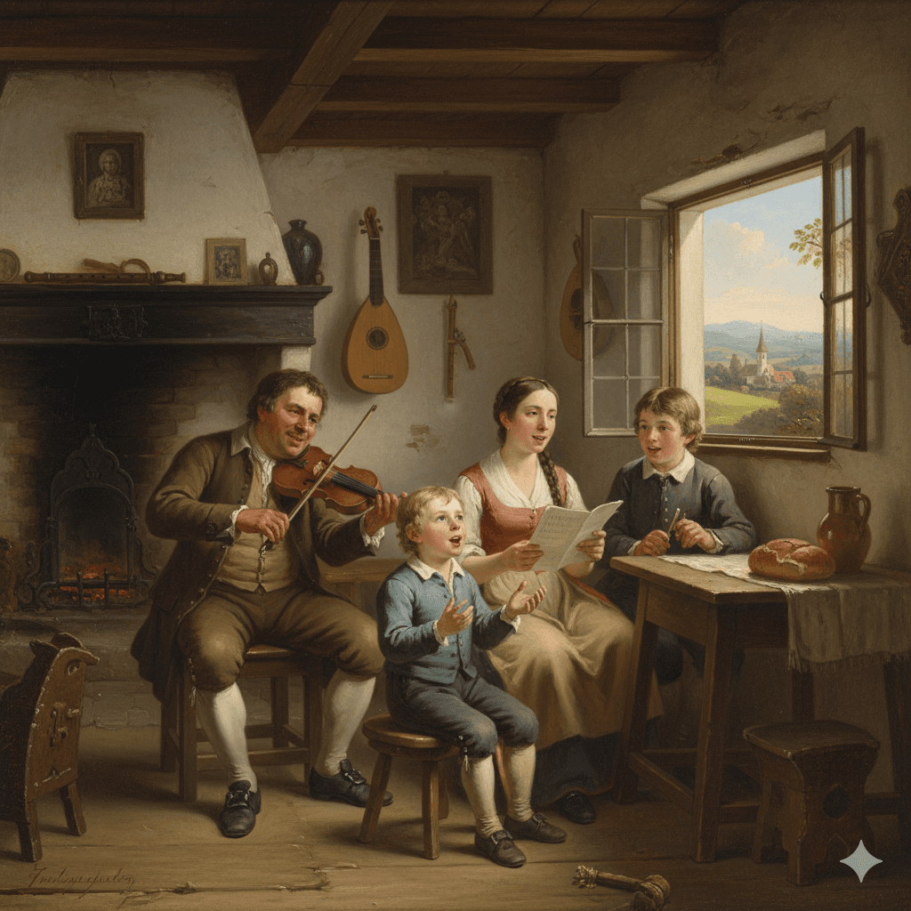 Young Haydn with his family, representative (image generated by artificial intelligence).