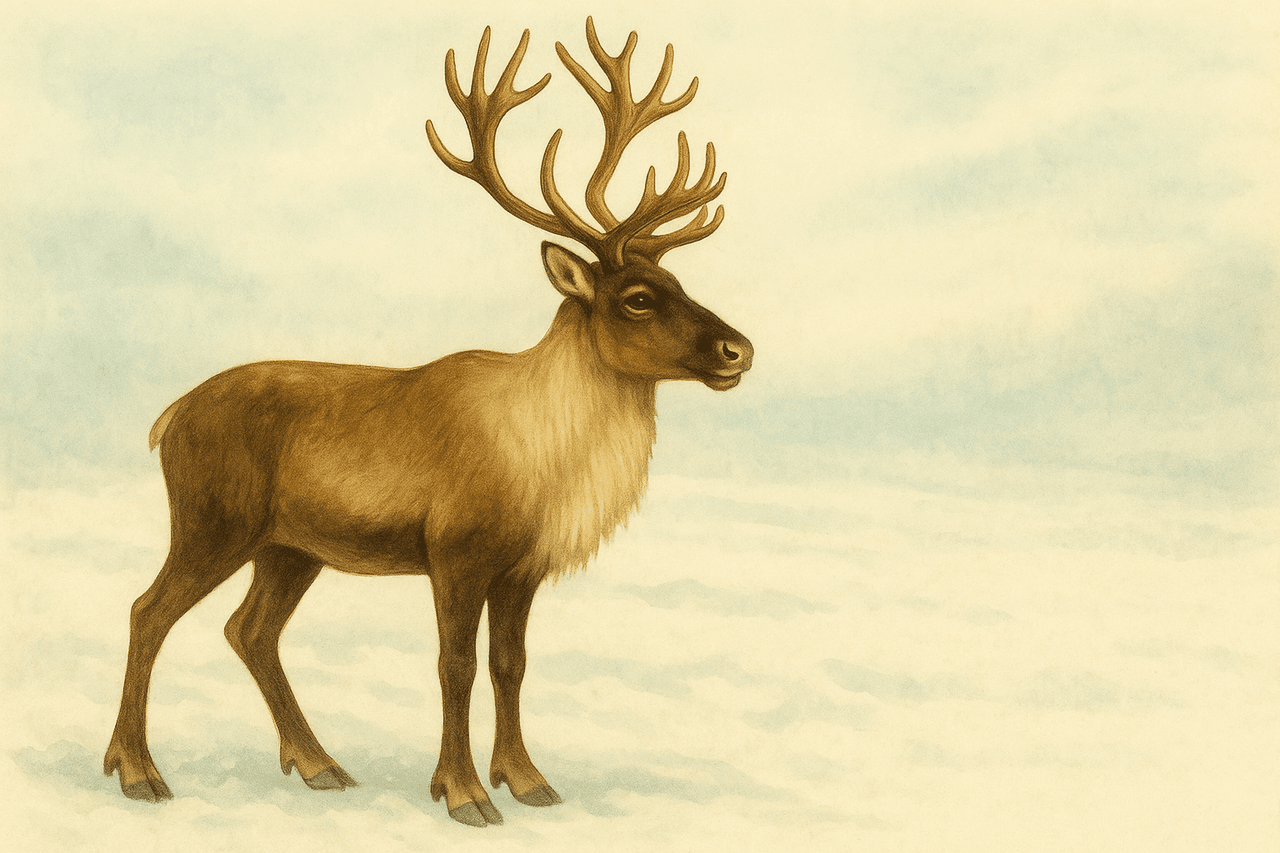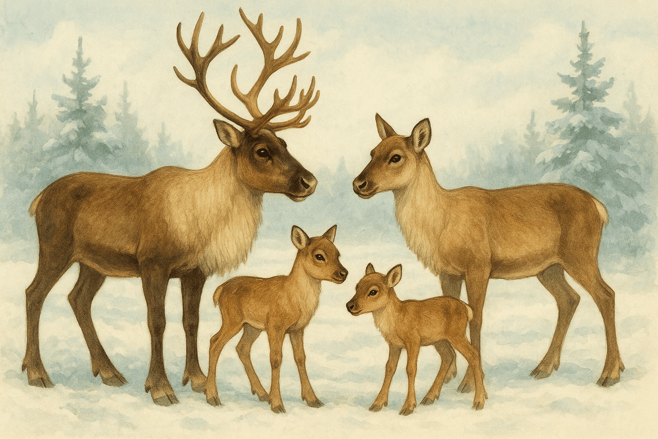 Reindeer (Rangifer tarandus) belongs to the Cervidae family. It is a strong and resilient animal that lives in the cold tundra and forest regions of the North.