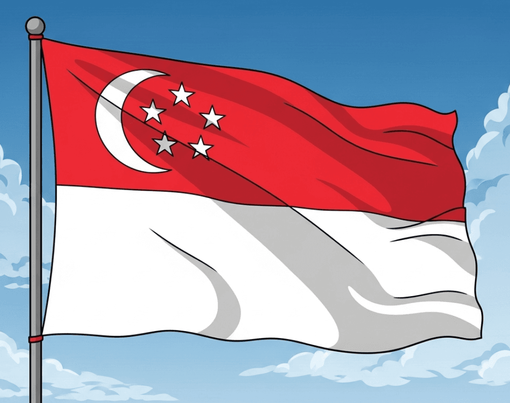 Singapore’s official languages are English, Malay, Tamil, and Mandarin Chinese. English is widely used in daily life and education. The Singaporean flag consists of two colors: red and white; red symbolizes universal brotherhood and equality, while white represents purity. In the upper left corner there is a white crescent and five white stars; the stars represent democracy and justice.