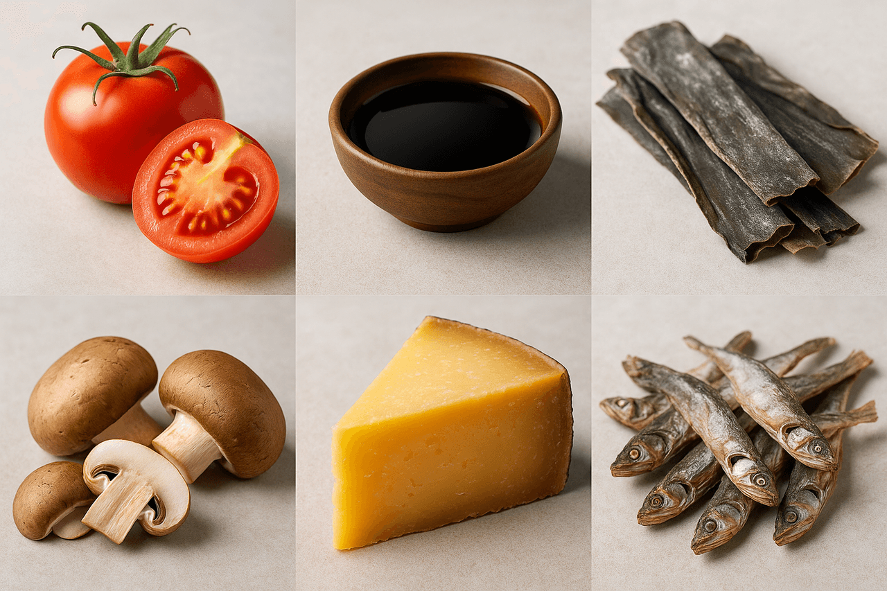 Umami occurs naturally in certain foods: