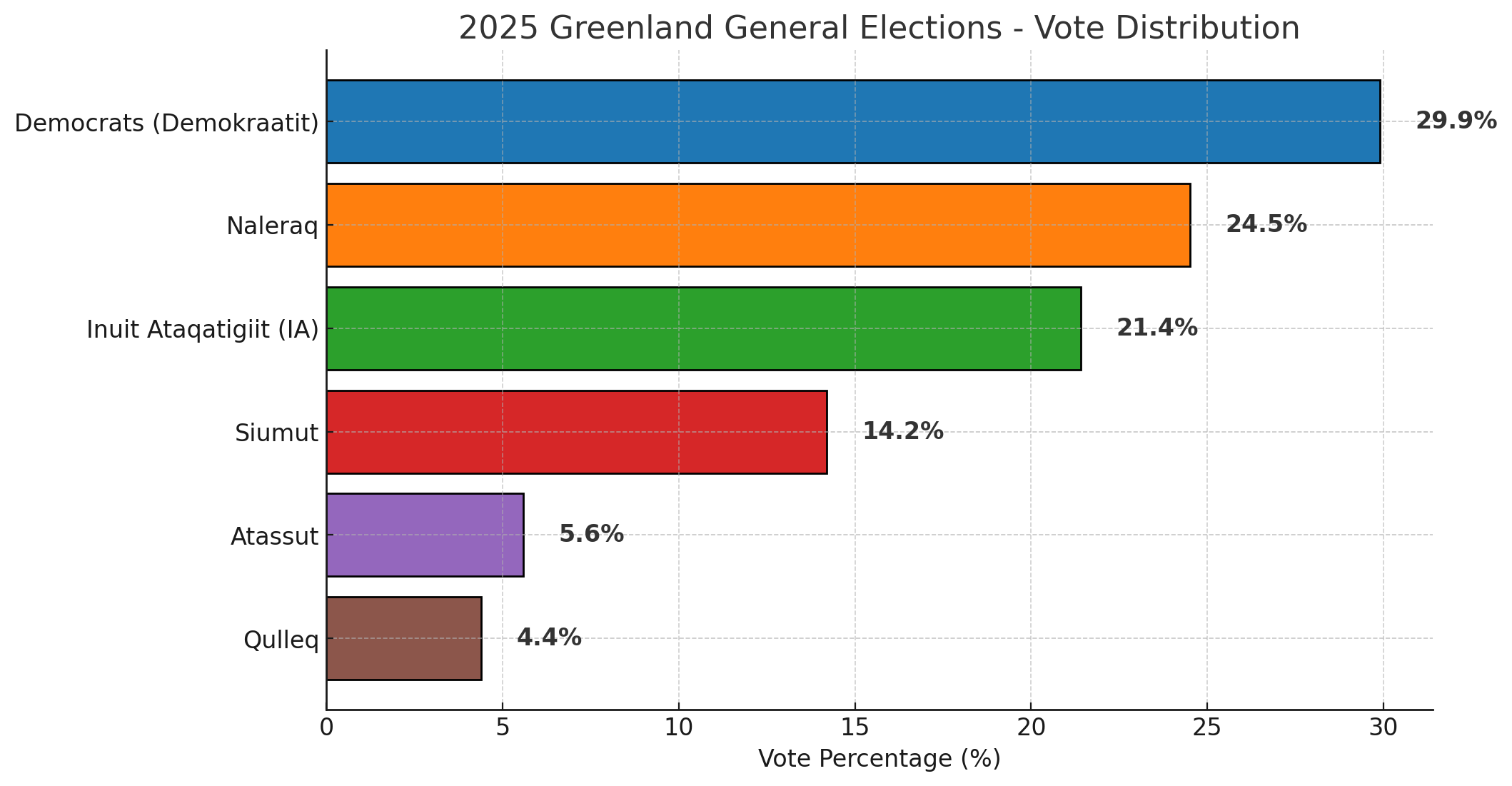 The 2025 Greenland General Elections were held on March 12, 2025, to determine the members of the Greenlandic Parliament, Inatsisartut. The elections took place under the shadow of disagreements among pro-independence parties and international factors, such as U.S. President Donald Trump’s attempts to take control of Greenland. As a result, the center-right Democrats (Demokraatit) Party won the elections but failed to secure a majority to form a government on its own.