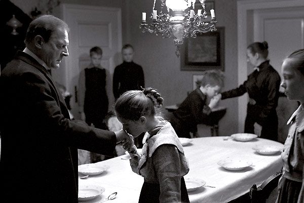 Film hakimiyyət fiqurlarını qorxu və basqı yolu ilə nizam yaratmağa çalışan şəxslər kimi təsvir edir. Baron kənddə iqtisadi gücün, rahib dini hakimiyyətin, həkim isə elmi avtoritetin simvoludur. Bu üç fiqur kəndlilərə və xüsusən də uşaqlara ciddi təzyiq göstərir. Onlara tətbiq olunan mənəvi qaydalar onları passiv itaətkarlığa sövq etməklə yanaşı, həm də zorakılığın nəsildən-nəslə ötürülməsinə səbəb olur.