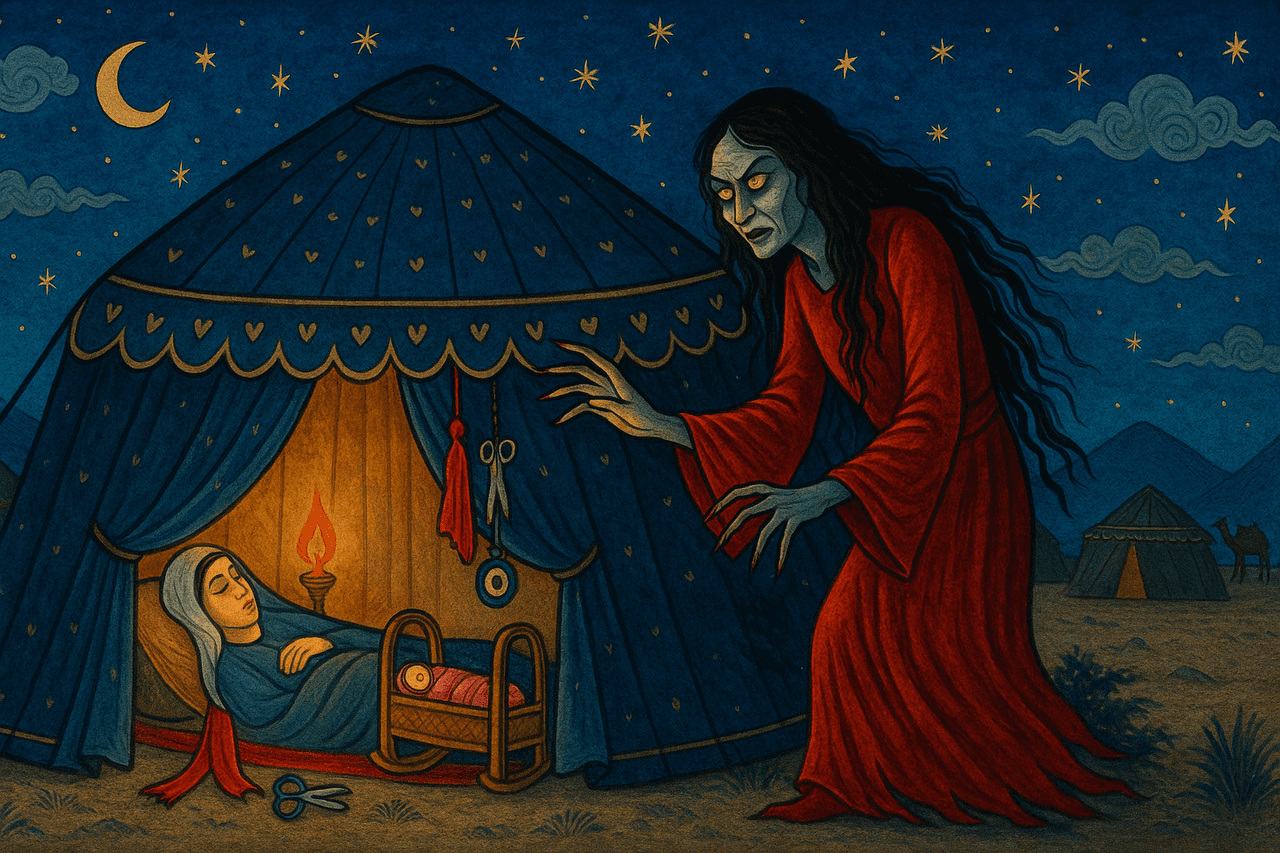 The origins of this belief extend back to the Sumerian civilization and are linked to Lilith, a figure in Jewish tradition regarded as Adam’s first wife, who was believed to haunt newborns and postpartum women. This demonstrates the presence of malevolent female spiritual powers performing similar functions and targeting similar victims across diverse cultural geographies. Furthermore, the fact that in some beliefs the Red Albastı is regarded as the mother of humanity suggests she may be a mythological counterpart to Umay, the protective deity, both originating from the same fire cult but embodying opposing forces.