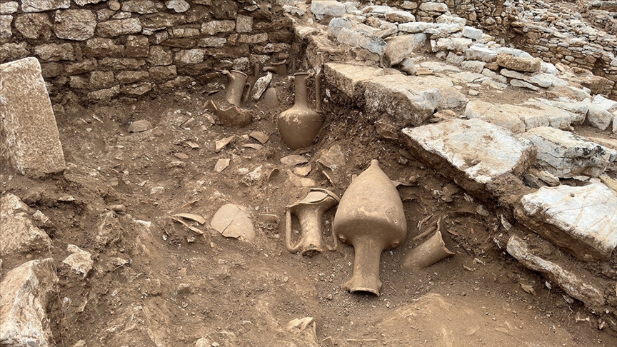 Amphorae found in the Ancient City of Amos. - Anadolu Agency