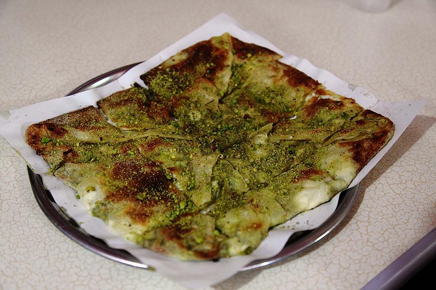 Antep Katmeri is a traditional dessert from Gaziantep, prepared by placing ground Antep pistachios, kaymak, sugar, and unsalted butter between thin sheets of dough. It has been officially registered as a "Geographical Indication" by the Turkish Patent and Trademark Office.
