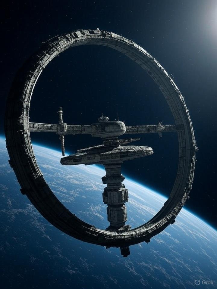 Example of a circular space station (generated by artificial intelligence)