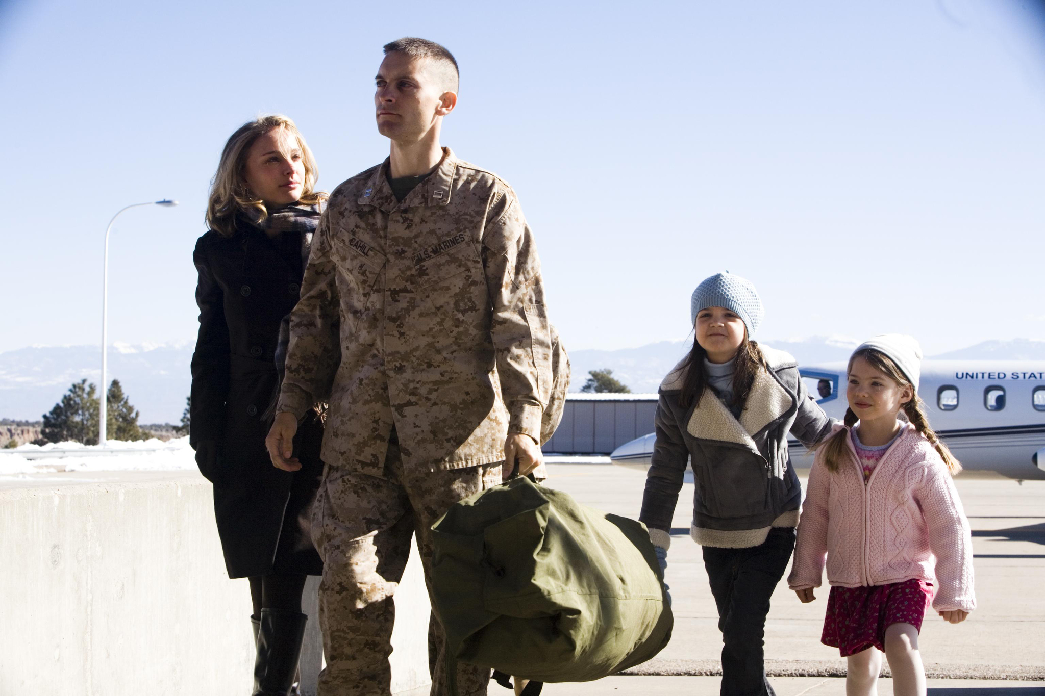 The film tells the emotional and psychological difficulties faced by the family of an American soldier serving in Afghanistan, after he goes missing. Captain Sam Cahill (Tobey Maguire) is presumed dead when his helicopter is shot down by enemy fire during his tour. His wife, Grace (Natalie Portman), and two daughters mourn Sam's death, while Sam's rebellious brother Tommy (Jake Gyllenhaal) tries to support the family. However, when news arrives that Sam is alive and has been taken prisoner, the family's dynamics shift, and everyone's life is reshaped.