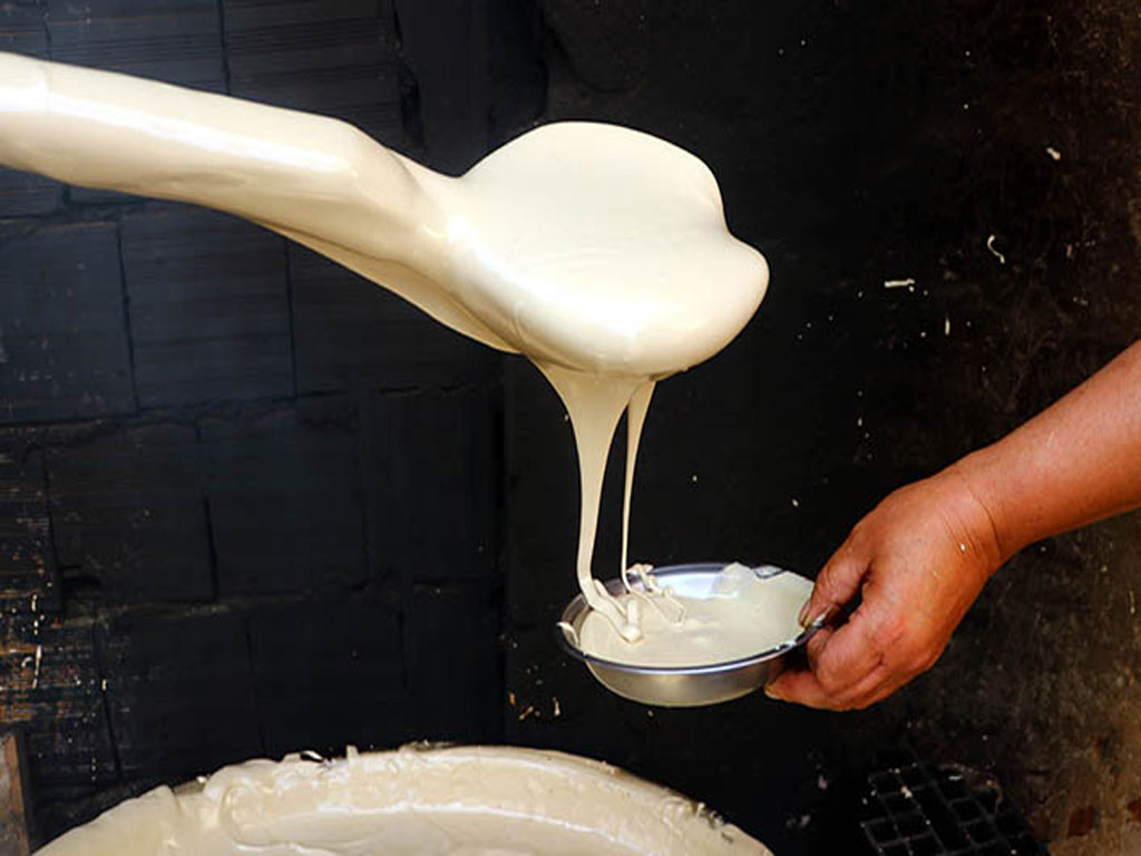 - The mixture is boiled in large copper cauldrons until it reaches a dense consistency.