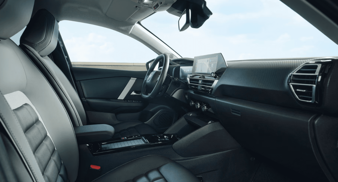 The Citroën C4 features a driver’s cabin based on the i-Cockpit architecture, incorporating a digital instrument cluster and a multimedia system. An elevated driving position and spacious interior are characteristic elements of its cabin layout.