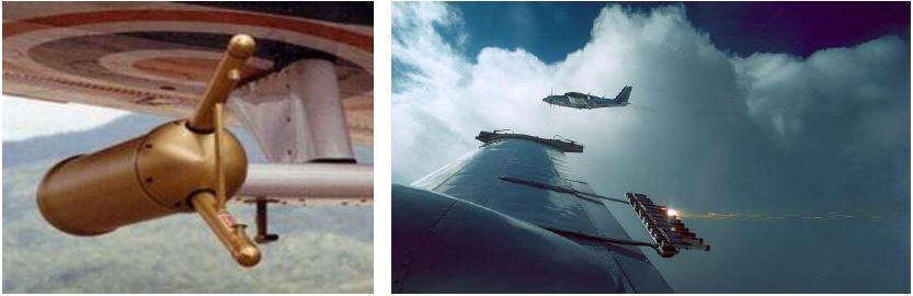 Aircraft release seeding agents into clouds from above, directly through the cloud body, or via rising air currents at the base. In this process, silver iodide smoke is emitted through burners mounted on aircraft wings. Silver iodide particles act as condensation nuclei within the cloud, promoting precipitation formation. Additionally, flare systems or spray mechanisms may be deployed from aircraft to deliver seeding materials.