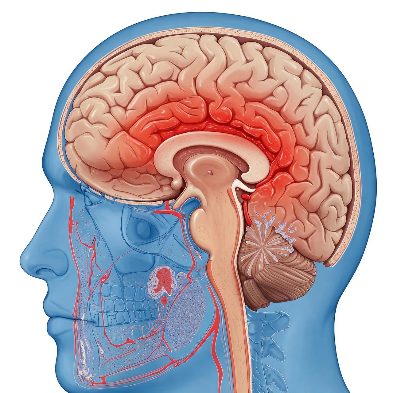 Visual showing neurological damage in the brain (generated by artificial intelligence).
