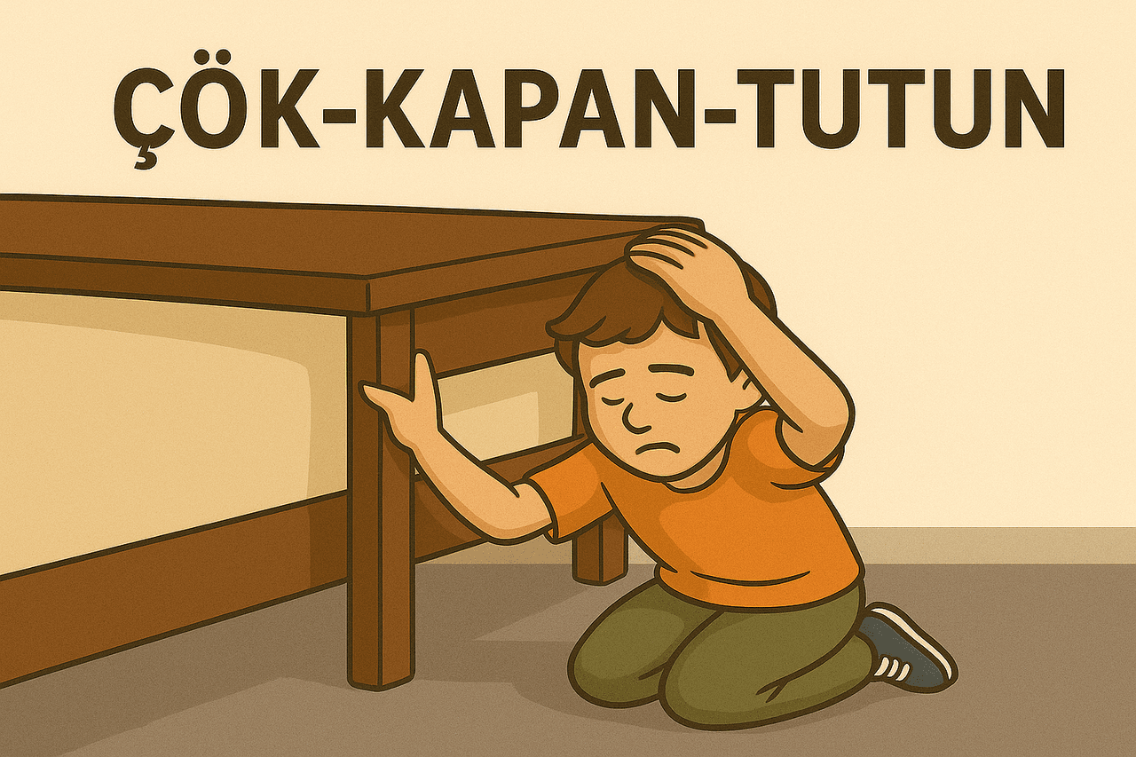 The Drop, Cover, and Hold On method is a systematic disaster response behavior that enables individuals to react quickly and effectively during an earthquake, regardless of their location. Due to its ease of application, teachability, and adaptability across diverse environments, it has become one of the foundational elements of Türkiye’s disaster education system.