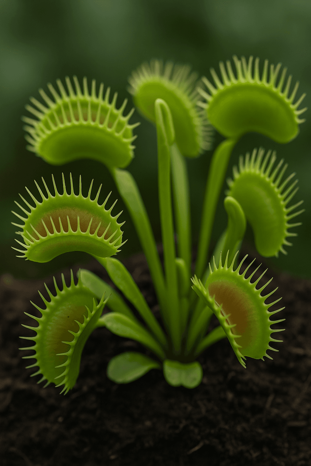 Dionaea muscipula, commonly known as the Venus flytrap, is a species distinguished by its structural and functional adaptations among carnivorous plants. It naturally occurs in a limited range in the southeastern United States, particularly in the wetland ecosystems of North and South Carolina. Despite being capable of photosynthesis, this species has evolved a heterotrophic feeding strategy to supplement its nutritional needs due to the nitrogen- and phosphorus-poor soils in which it grows.