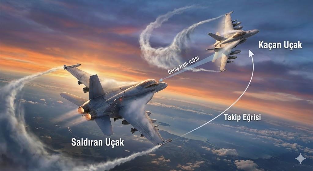 The defining characteristic of the WVR (within visual range) environment is the high decision rhythm and command frequency. In BVR (beyond visual range) engagements, outcomes are primarily shaped by sensor ranges, network-centric information flow, and long-range missile envelopes; in WVR, visual and short-range perception become dominant. This manifests concretely in how the line-of-sight (LOS) direction and LOS rate (angular velocity relative to the target) directly determine the firing window. Reliable operation of aiming systems depends not only on the target entering range but also on reducing LOS rate sufficiently to maintain stable aim on the target. Therefore, dogfighting is less a problem of optimizing spatial position alone and more a problem of managing the “angular meaning” that the spatial state creates relative to the target. This approach, known in the literature as the “space–angle game,” refers to integrating spatial decisions—such as turn plane, altitude layer, and distance—with angular decisions—such as AOT (angle-off-tail), lead/pure/lag tracking angles, and HOBS (high off-boresight)—and proper timing. In other words, advantage often arises from the combination of selecting the correct plane, maintaining the correct speed band, and sustaining LOS rate within the aiming system’s required range.