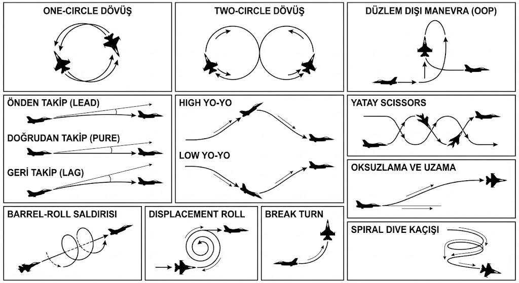 Fourth- and fifth-generation fighter aircraft have redefined dogfight doctrine not only through aerodynamic and energy capabilities but also through perceptual dominance elements. While “energy superiority” remains a critical parameter, “perceptual superiority” has become an equally decisive factor in modern engagements. Sensor fusion capabilities, IRST (Infrared Search and Track), helmet-mounted sight systems (HMD/HOBS), AESA radar architectures, and network-centric data sharing have enabled pilots or autonomous systems to evaluate not only the immediate environmental situation but also potential tactical outcomes in advance. In this context, dogfighting today is not merely a physical maneuvering contest but also a contest of perceptual and cognitive temporal superiority. On modern platforms, a maneuver is executed not only to alter geometry but also to delay the opponent’s decision cycle; this represents an elevation of the classical “maneuver game” approach to a higher level.