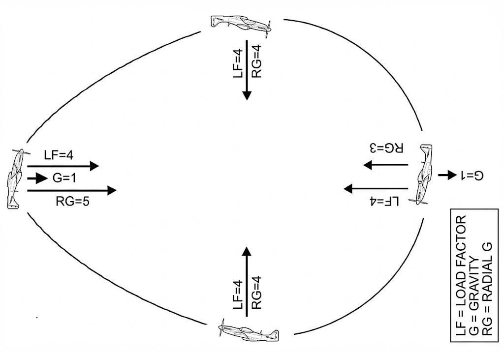 Geometry and basic maneuvers are concrete tools directly linked to the ultimate goals of dogfighting: achieving a firing solution and preventing the opponent from achieving one. In this context, maneuver selection is based not on aesthetic advantage but on a combination of relative speed, turn capability, load factor, and weapon/sensor constraints. The mathematical basis of geometric concepts can be summarized by the relationships between centripetal acceleration and load factor; during a flight turn, centripetal acceleration <span class="katex"><span class="katex-html" aria-hidden="true"><span class="base"><span class="strut" style="height:0.5806em;vertical-align:-0.15em;"></span><span class="mord"><span class="mord mathnormal">a</span><span class="msupsub"><span class="vlist-t vlist-t2"><span class="vlist-r"><span class="vlist" style="height:0.1514em;"><span style="top:-2.55em;margin-left:0em;margin-right:0.05em;"><span class="pstrut" style="height:2.7em;"></span><span class="sizing reset-size6 size3 mtight"><span class="mord mathnormal mtight">c</span></span></span></span><span class="vlist-s"></span></span><span class="vlist-r"><span class="vlist" style="height:0.15em;"><span></span></span></span></span></span></span><span class="mspace" style="margin-right:0.2778em;"></span><span class="mrel">=</span><span class="mspace" style="margin-right:0.2778em;"></span></span><span class="base"><span class="strut" style="height:1.0641em;vertical-align:-0.25em;"></span><span class="mord"><span class="mord mathnormal" style="margin-right:0.22222em;">V</span><span class="msupsub"><span class="vlist-t"><span class="vlist-r"><span class="vlist" style="height:0.8141em;"><span style="top:-3.063em;margin-right:0.05em;"><span class="pstrut" style="height:2.7em;"></span><span class="sizing reset-size6 size3 mtight"><span class="mord mtight">2</span></span></span></span></span></span></span></span><span class="mord">/</span><span class="mord mathnormal" style="margin-right:0.00773em;">R</span></span></span></span> and load factor <span class="katex"><span class="katex-html" aria-hidden="true"><span class="base"><span class="strut" style="height:0.4306em;"></span><span class="mord mathnormal">n</span></span></span></span> are related by <span class="katex"><span class="katex-html" aria-hidden="true"><span class="base"><span class="strut" style="height:0.5806em;vertical-align:-0.15em;"></span><span class="mord"><span class="mord mathnormal">a</span><span class="msupsub"><span class="vlist-t vlist-t2"><span class="vlist-r"><span class="vlist" style="height:0.1514em;"><span style="top:-2.55em;margin-left:0em;margin-right:0.05em;"><span class="pstrut" style="height:2.7em;"></span><span class="sizing reset-size6 size3 mtight"><span class="mord mathnormal mtight">c</span></span></span></span><span class="vlist-s"></span></span><span class="vlist-r"><span class="vlist" style="height:0.15em;"><span></span></span></span></span></span></span><span class="mspace" style="margin-right:0.2778em;"></span><span class="mrel">=</span><span class="mspace" style="margin-right:0.2778em;"></span></span><span class="base"><span class="strut" style="height:0.625em;vertical-align:-0.1944em;"></span><span class="mord mathnormal">n</span><span class="mord mathnormal" style="margin-right:0.03588em;">g</span></span></span></span>; thus, turn radius <span class="katex"><span class="katex-html" aria-hidden="true"><span class="base"><span class="strut" style="height:0.6833em;"></span><span class="mord mathnormal" style="margin-right:0.00773em;">R</span></span></span></span> and angular turn rate <span class="katex"><span class="katex-html" aria-hidden="true"><span class="base"><span class="strut" style="height:0.8889em;vertical-align:-0.1944em;"></span><span class="mord mathnormal" style="margin-right:0.03588em;">ψ</span></span></span></span> can be expressed as: