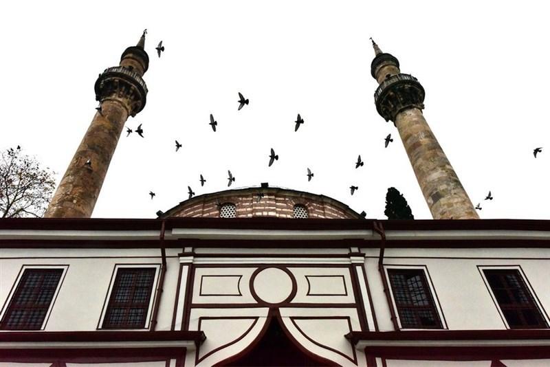 Two square-based minarets, constructed of cut stone, rise from the northeast and northwest corners of the mosque. These cylindrical minarets are supported by consoles shaped like acanthus leaves and feature balconies reminiscent of the Corinthian order. The minaret caps are also made of cut stone. Both minarets were destroyed in the 1855 Bursa earthquake and were rebuilt between 1868 and 1869 during the reign of Sultan Abdülaziz.