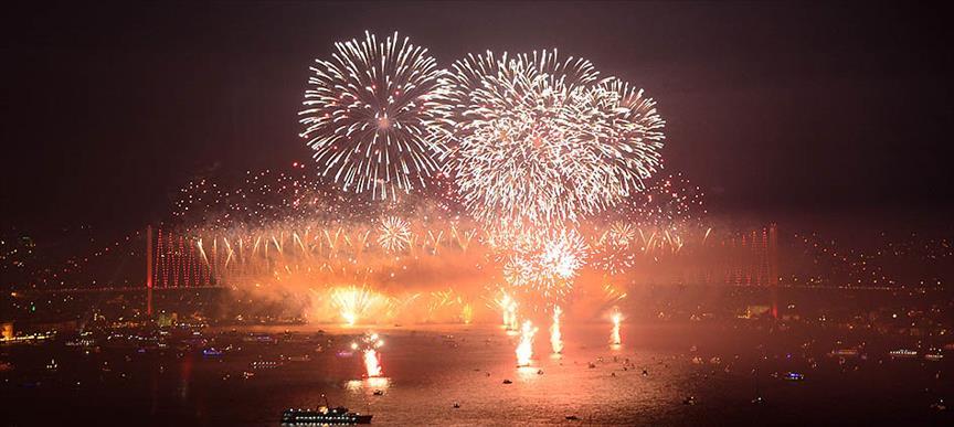 Fireworks display over the Bosphorus during Republic Day celebrations, October 29, 2013 (AA)