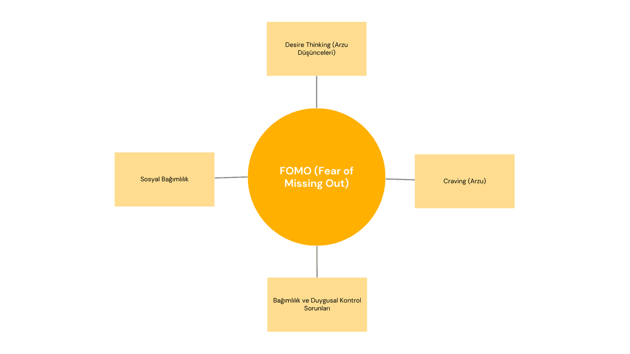 FOMO is a pervasive emotional state encountered by individuals in the digital age. Social media use has made this feeling more frequent and intense. When individuals see the “perfect moments” in others’ lives, they may perceive deficiencies in their own. However, FOMO is not merely a reaction to social media and external events; it is underpinned by complex psychological mechanisms. Linked to desire thinking, craving, social media addiction, and other cognitive processes, the sustained effects of FOMO can impact individuals’ emotional and social well-being. Therefore, it is essential to develop strategies to manage the effects of FOMO, particularly through psychotherapeutic interventions and by fostering healthier social media habits.