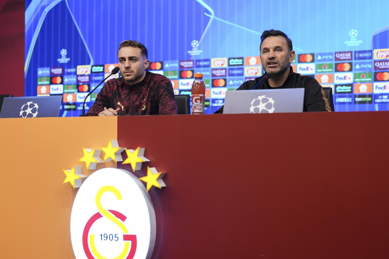 Galatasaray head coach Okan Buruk and player Barış Alper Yılmaz made statements at a press conference held at the Kemerburgaz Metin Oktay Facilities on 16 February 2026 ahead of their first match against Juventus in the UEFA Champions League play-off round.
