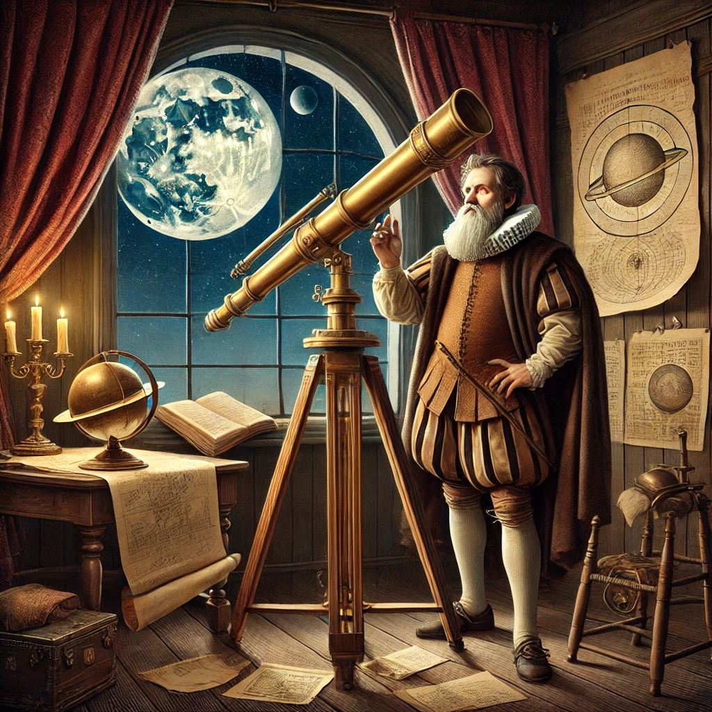Galileo Galilei (15 February 1564 - 8 January 1642) is considered one of the most important figures of the Scientific Revolution as an Italian mathematician, physicist, astronomer, and philosopher. By observing the sky with the telescope he developed, he discovered Jupiter’s moons, the phases of Venus, sunspots, and the rugged surface of the Moon; in the field of physics, he conducted groundbreaking studies on the motion of falling objects, the laws of the pendulum, and mechanics. His defense of Copernicus’s heliocentric universe theory led to his conflict with the Catholic Church, causing him to spend his final years under house arrest. Galileo’s experimental approach laid the foundation for modern science and earned him the title “Father of Modern Science.”