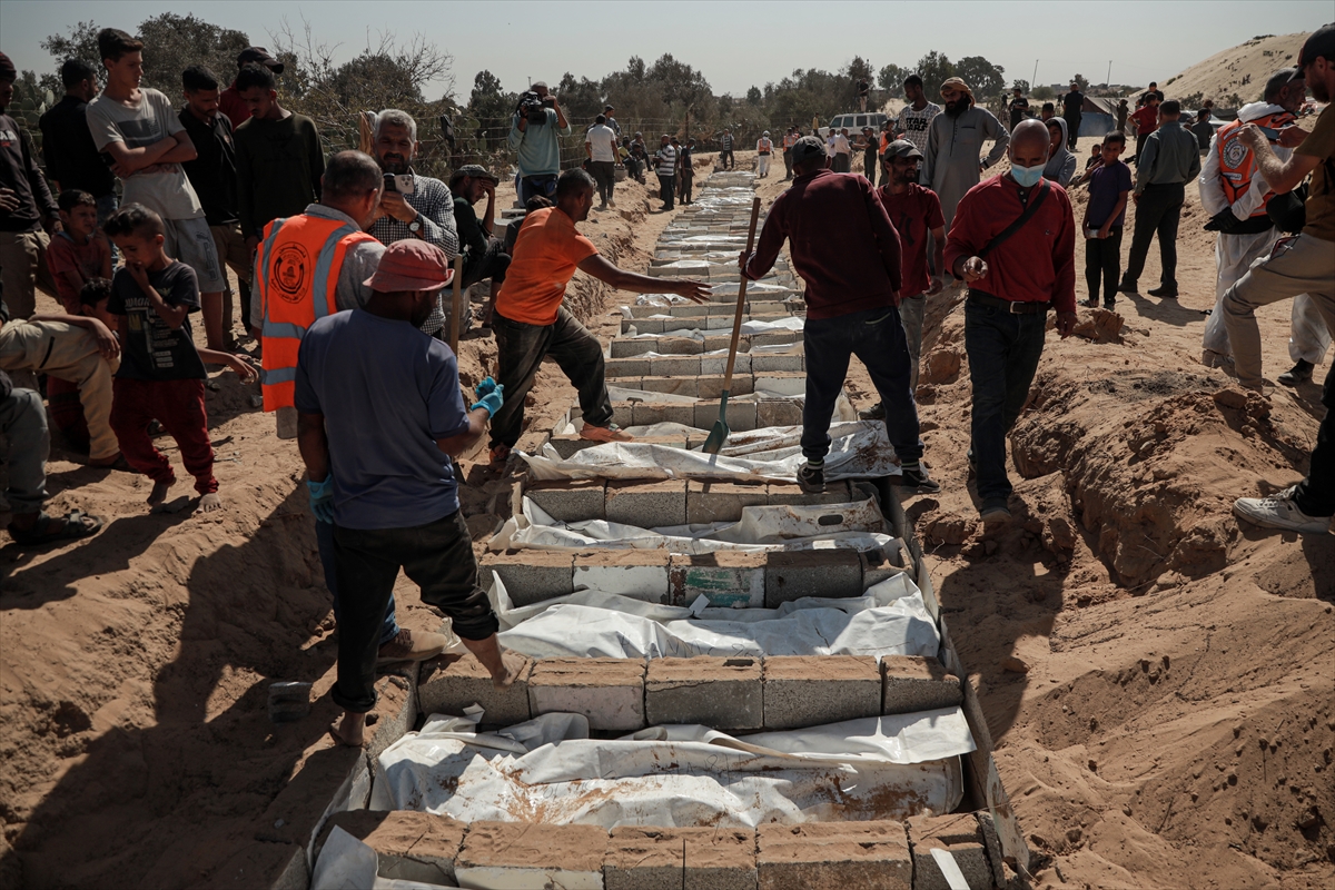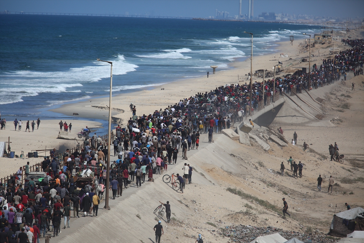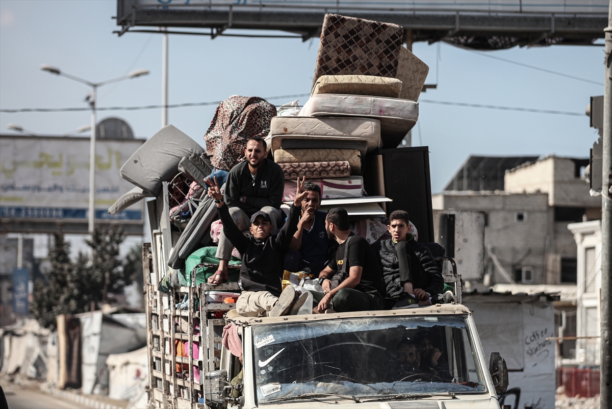 Gazze’de yürürlüğe girmesi beklenen ateşkes duyurusunun ardından Han Yunus'ta toplanan Filistinliler, 9 Ekim 2025 - (Anadolu Ajansı)