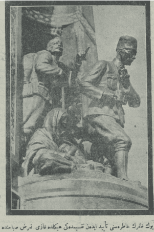 Büyük zaferin hatırasını teyid eden Taksim'deki heykelde Gazi taarruz sabahında.