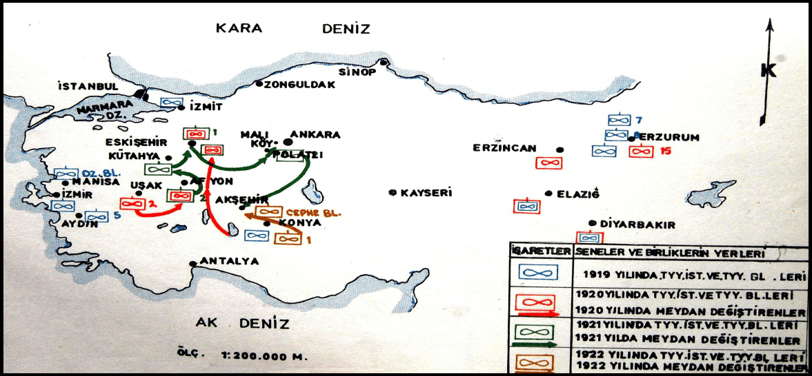 Gentlemen, on 26 and 27 August, that is, within two days, we overcame the enemy’s fortified front lines 50 kilometers south and 20–30 kilometers east of Karahisar. We encircled the entire forces of the defeated enemy around Aslıhanlar by 30 August. As a result of the battle we conducted on 30 August (known as the Commandership Battle), we annihilated and captured the enemy’s main forces. The enemy commander-in-chief, General Trikopis, was among the prisoners. Thus, the decisive outcome we envisioned was achieved in five days. On 31 August 1922, while our armies advanced toward İzmir with their main forces, other parts were moving to defeat the enemy forces stationed in Eskişehir and the north.【17】