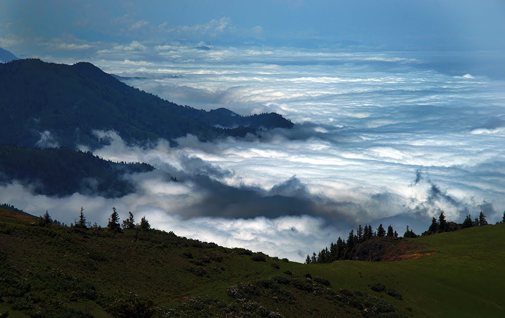 Vegetation is stratified by elevation. Colchic flora species (hornbeam, alder, oak, and chestnut ) dominate the lower elevations , while coniferous forests such as spruce and fir occur at medium and high altitudes. Alpine meadow -pasture ecosystems near the summits are found on the upper reaches of the mountain ranges. Forest density is high throughout the district; open spaces are limited, and green cover softens the sharp contours of the valleys, creating a characteristic landscape .