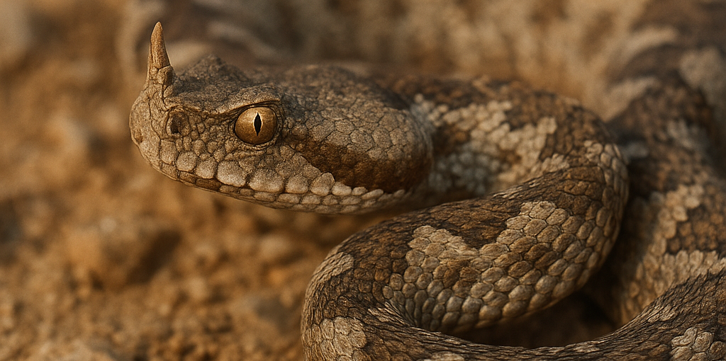 The horned viper (Vipera ammodytes) is a venomous snake species belonging to the family Viperidae. It is native to parts of Europe and Western Asia and is found naturally in Türkiye’s Thrace and Marmara regions. The species takes its name from a prominent, horn-like projection on its snout, which curves upward. This distinctive morphological trait sets it apart from other viper species and facilitates easy identification.