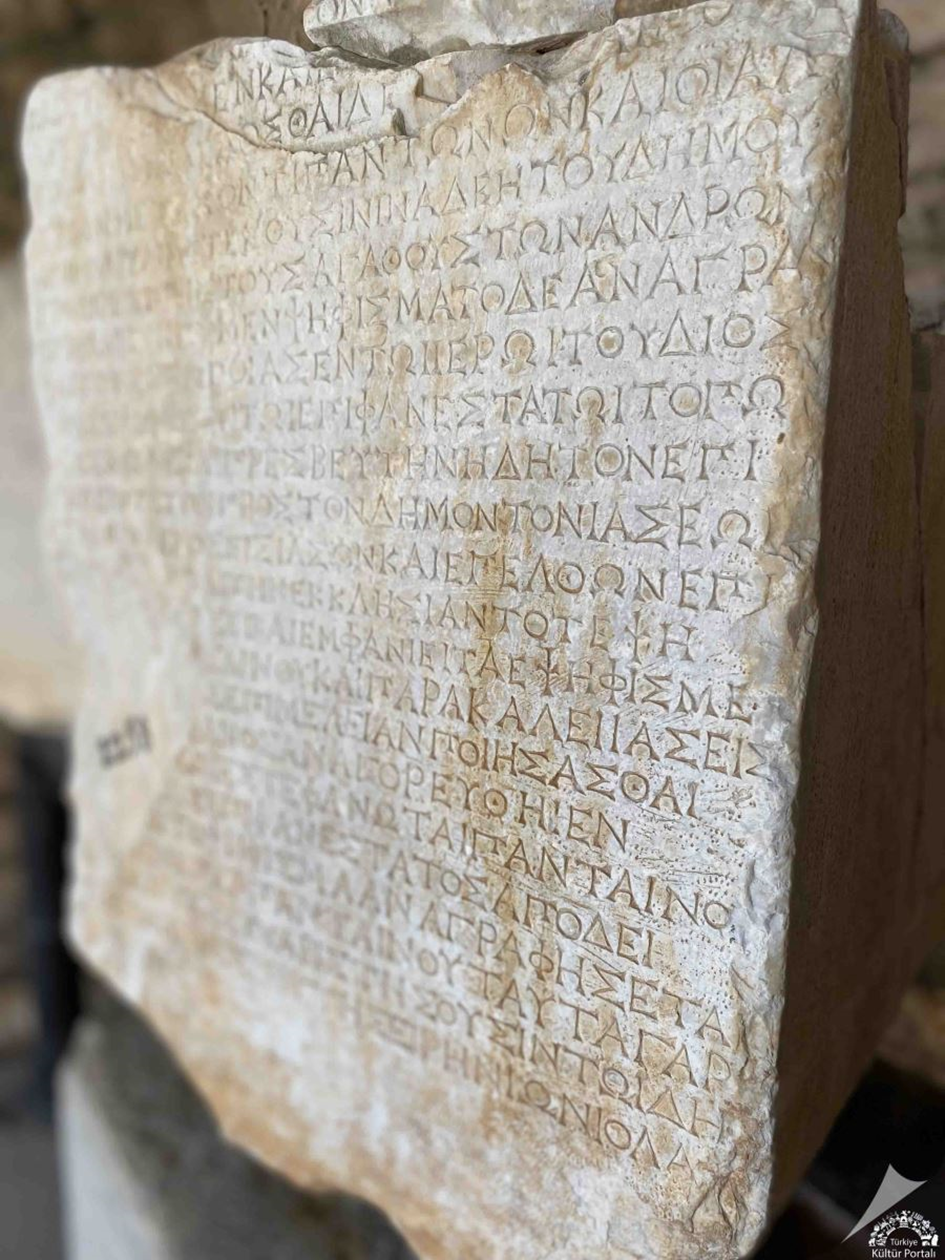 One of the most important artefacts is a large stele inscription dating back to 196/195 BC, which contains a letter written by Laodice, wife of Seleucid King Antiochus III. The letter states that Laodice donated a large amount of wheat to the city to help it recover from a disaster.