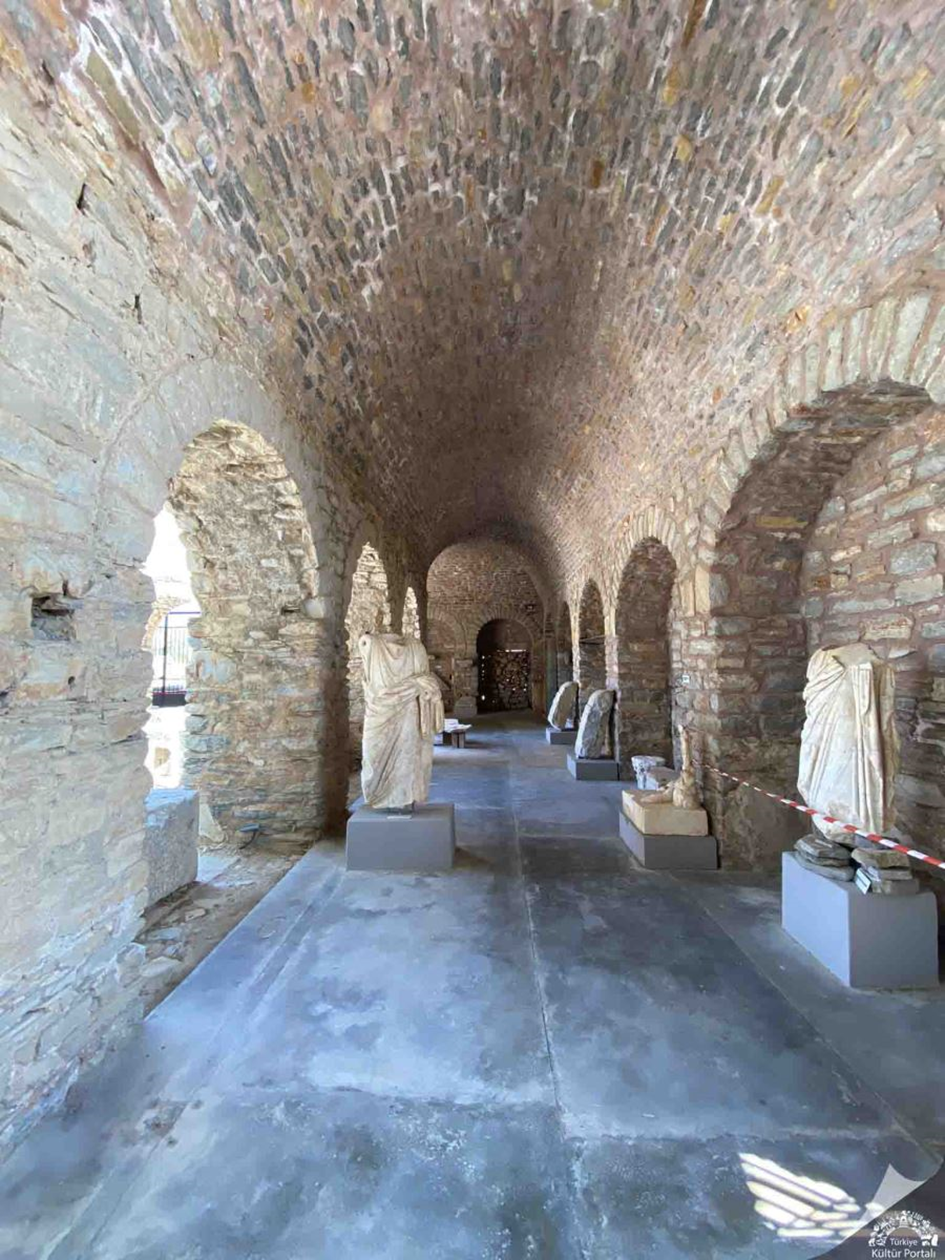 The museum displays stone, marble, and terracotta artifacts from various periods that were excavated in and around the ancient city of Iasos. These artifacts include sculptures, architectural pieces, relief stones, altar stones, inscriptions, and floor mosaics.