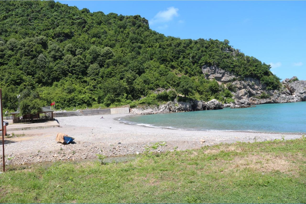 The beach features a mixture of fine sand and pebbles, with shallow and generally calm waters. These characteristics provide a safe environment for swimming, particularly for individuals with limited swimming ability. The coastline is surrounded by forested areas, creating a natural ecosystem-integrated summer experience. Visual materials from sources clearly reflect this natural integrity.