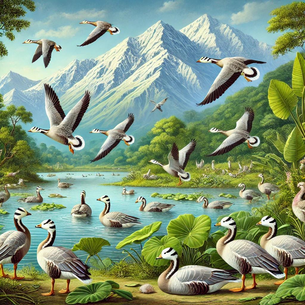 The Bar-headed Goose (Anser indicus) is a bird species known for its ability to fly at high altitudes migration. Found primarily in the Himalayan region common, this species can reach altitudes of up to 8,000 meters during migration. This capability makes it one of the highest-flying birds in the world. The Bar-headed Goose attracts significant global attention due to its physical characteristics, migratory routes, and ecological role science.