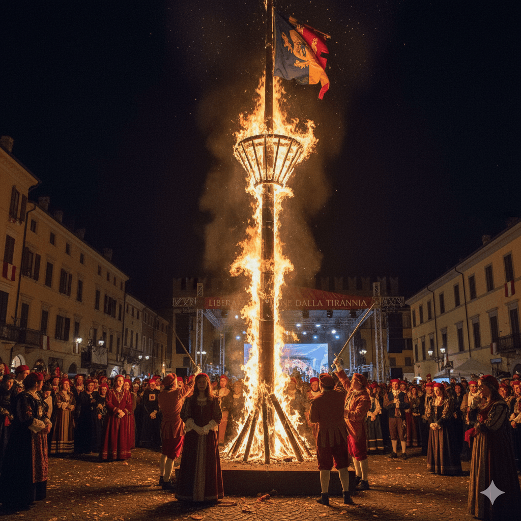 Ivrea Carnival – The Scarlo Burning Ritual (Generated by Artificial Intelligence)