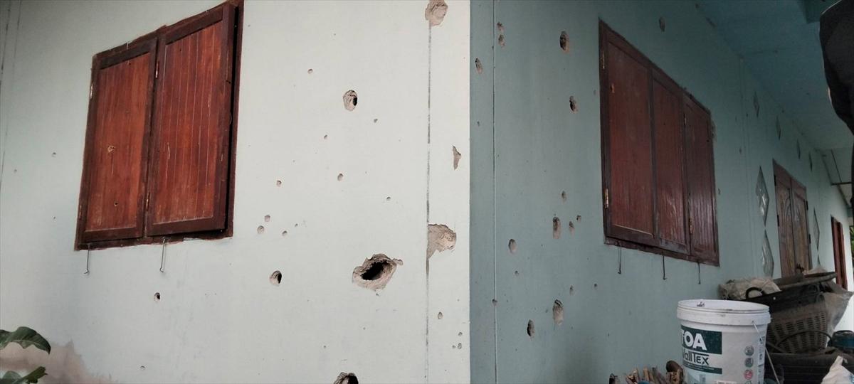 Tayland ile Kamboçya arasında yeniden başlayan çatışmalarda hasar alan bir bina, 10 Aralık 2025 - (Anadolu Ajansı)