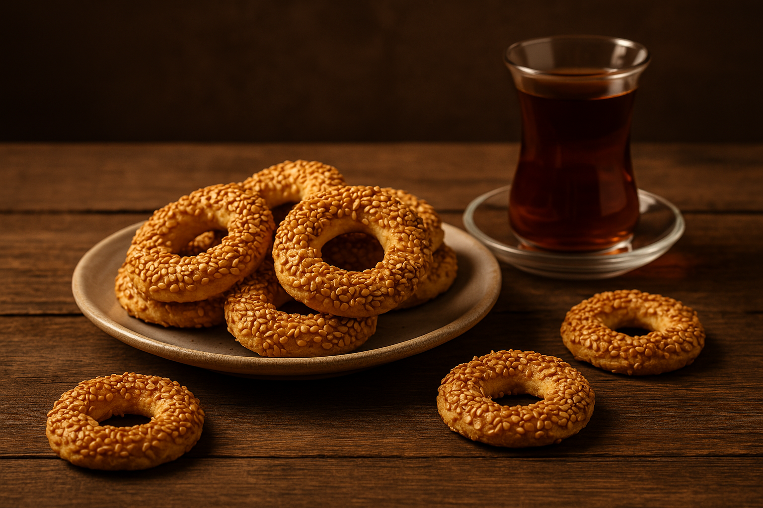 Kandil simidi is one of the traditional elements of Turkish cuisine. Typically prepared and served on sacred kandil nights—Islamic holy nights—it is a savory, sesame-coated pastry with a crunchy texture. Shaped like a miniature bagel or ring, kandil simidi is a symbolic food consumed during these special nights.