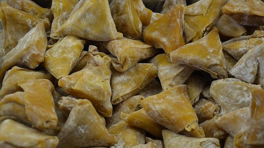 Maraş samsası is a confection produced by boiling a mixture of grape must, wheat starch, and wheat flour over wood fire, drying it into thin layers, cutting it into strips, placing crushed walnut inside, rolling it into triangular shapes, and storing it under pressure in a container for an extended period.