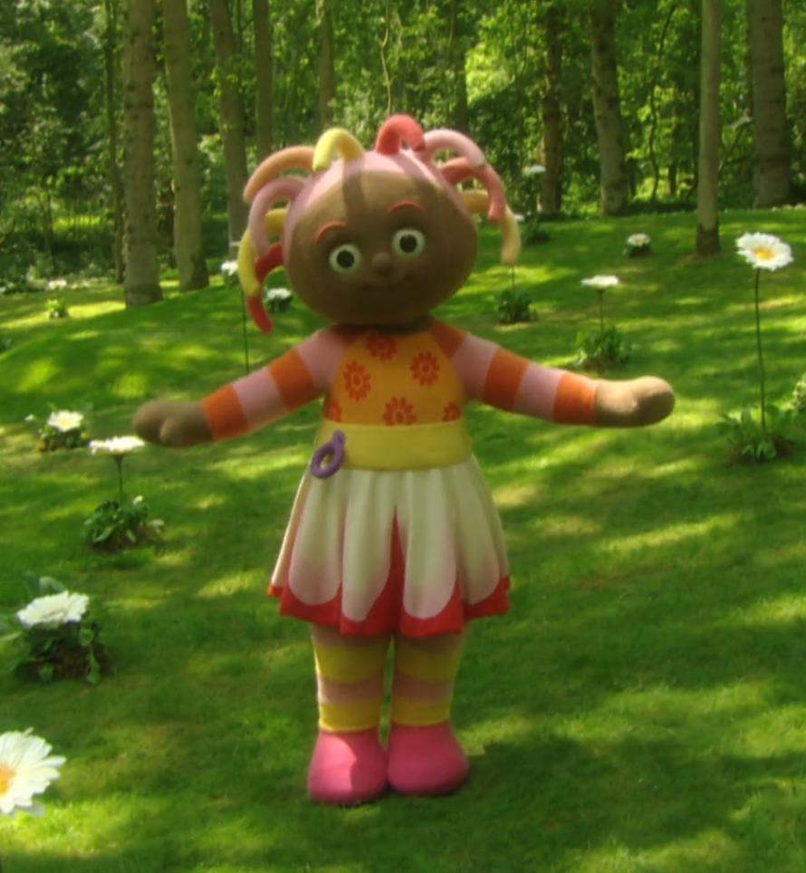 Igglepiggle (Nick Kellington) is an energetic and beloved character, recognized by his constant companion, a red blanket. He hops and moves around the garden with a curious and adventurous personality, yet occasionally displays vulnerable and shy traits. Igglepiggle often seeks reassurance, which he finds most effectively through his friendship with Upsy Daisy and his cherished blanket.【1】