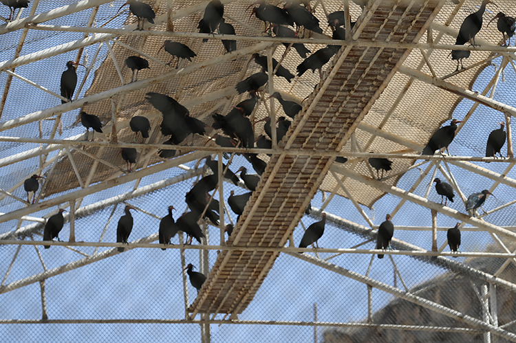 Historically, the Northern Bald Ibis was a migratory species. The Birecik population in Turkey traditionally migrated southward each summer. However, since 1990, the migration practice has ceased due to the failure of migrating individuals to return. Currently, the Northern Bald Ibises in Birecik are managed under a “semi-wild” status; they are released into the wild from their enclosures each February and returned to captivity in July. Despite this management, the species’ natural migratory instinct remains largely intact.