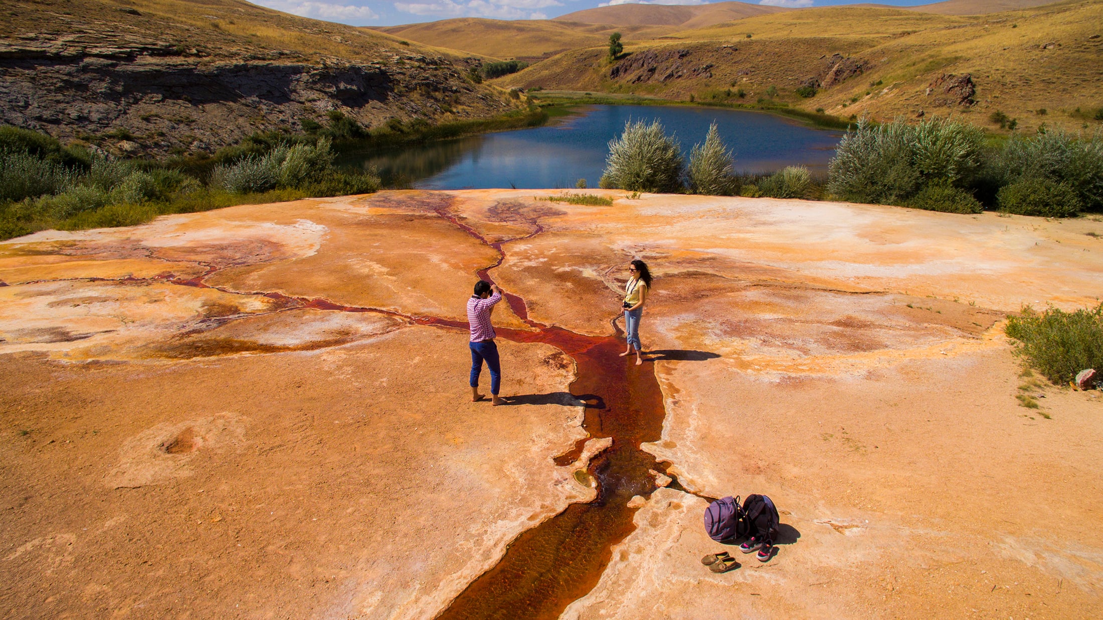Otlukbeli Lake is a unique geological formation. Unlike other barrier lakes, its formation is not due to karstic processes, but rather the precipitation of minerals from underground waters. The accumulation of calcium, magnesium, and iron-rich mineral waters has created a natural travertine barrier, allowing water to collect and form the lake. This geological structure introduced a previously unidentified lake type to the scientific community.