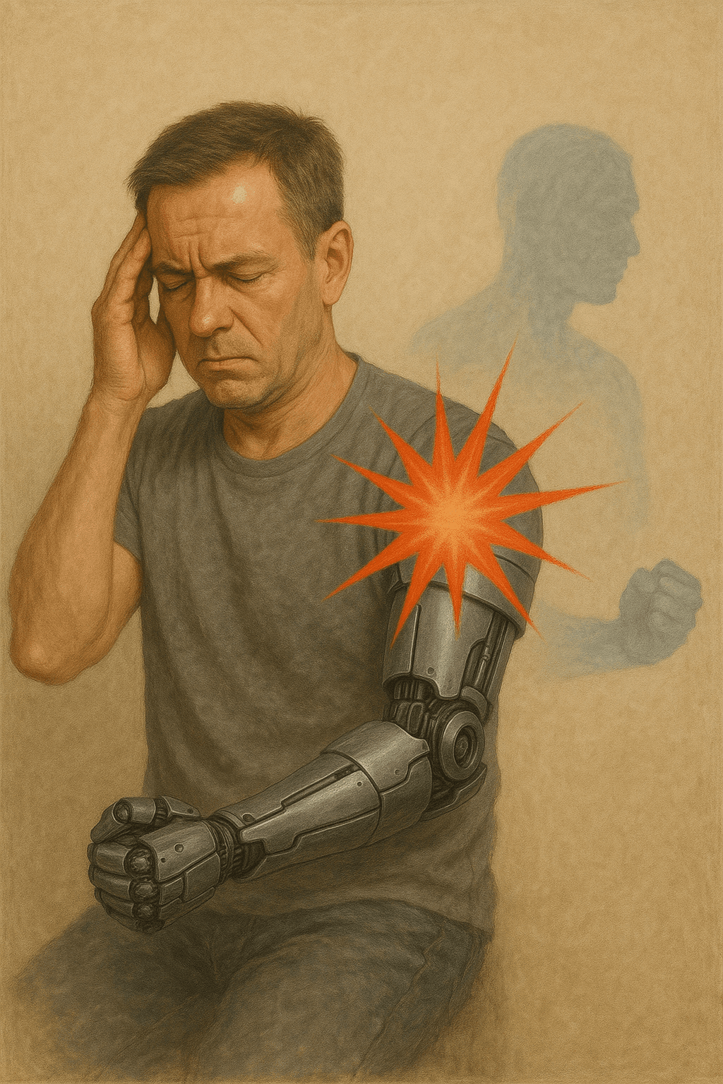 A visual representation of phantom limb pain. (Generated by artificial intelligence.)