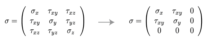 In theoretical and numerical calculations, an increase in the number of equations leads to longer computation times. When plane stress is assumed, the dimensions of the stress tensor and matrix are reduced. Normally, the stress state is represented by a three-dimensional matrix (3x3) matrix, but under the plane stress assumption, it becomes a two-dimensional matrix (2x2). This reduces the number of equations in the problem and shortens the solution time.