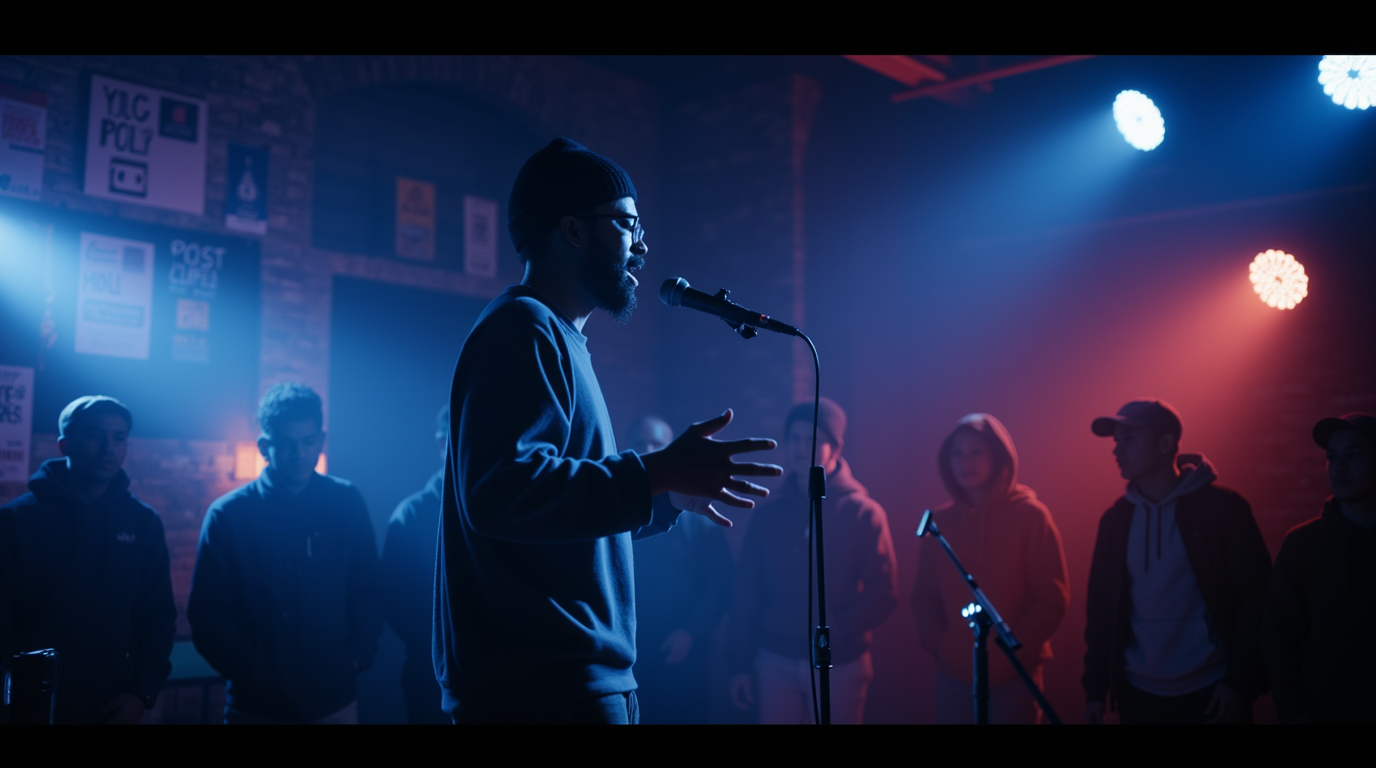 The term "slam" originates from English, meaning "to strike forcefully" or "to criticize harshly." In the poetic context, slam poetry refers to texts centered on personal or social themes that are performed on stage with rhythm, intonation, and bodily gestures. A "poetry slam" denotes the competitive event where these performances are showcased.